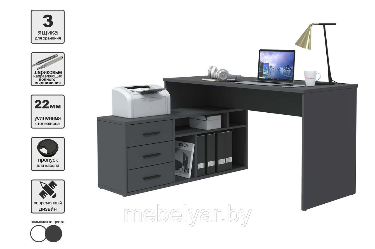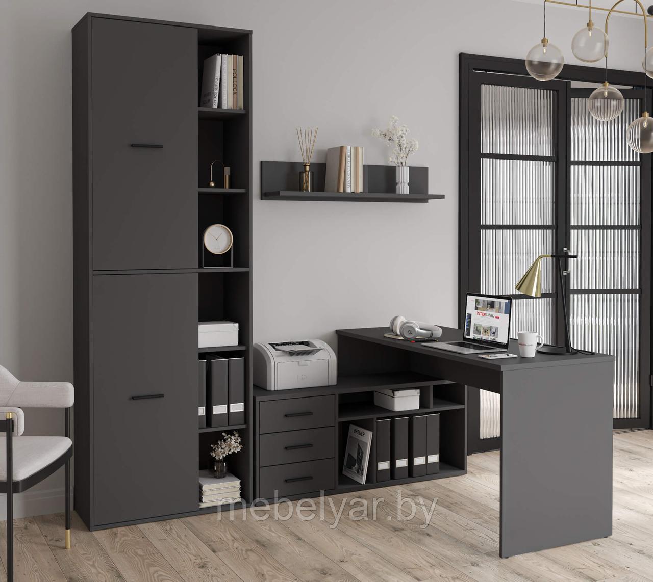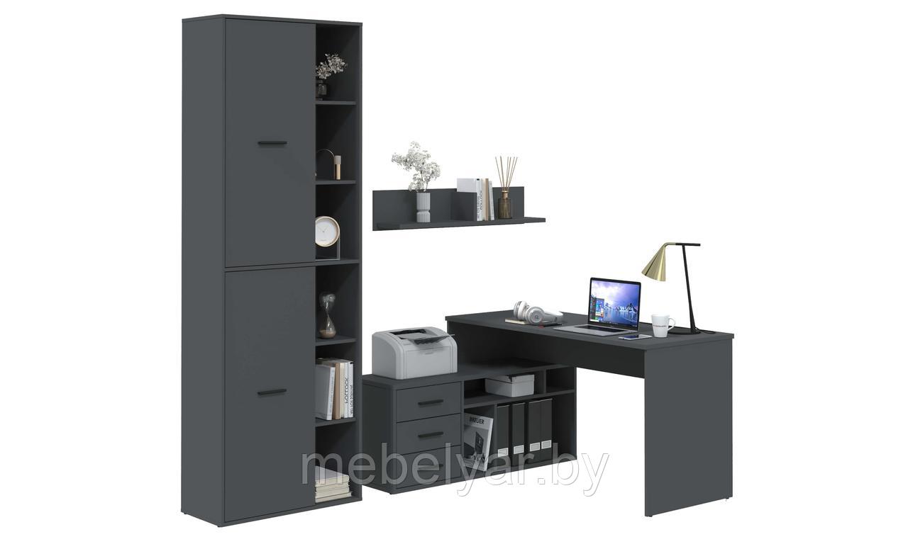 Тип комплект мебели для кабинета Состав комплекта стол, полка, шкаф Материал фасада ЛДСП Материал каркаса ЛДСП Материал столешницы ЛДСП Материал опор стола ЛДСП Цвет фасада серый (антрацит) Цвет каркаса серый (антрацит) Название расцветки антрацит Цвет столешницы серый Цвет опор стола серый (антрацит) Коллекция Skill (Интерлиния) Дверцы шкафа распашные Наполнение шкафа полки Тумба есть Ящики 3 Открытые полки 10 Форма поставки в разобранном виде