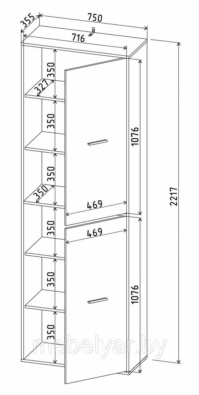 Размеры шкафа (ДхГхВ) 75х35.5х221.7 см Размеры стола (ДхГхВ) 140х120х76.5 см Размеры полки (ДхГхВ) 99.8х20х20 см